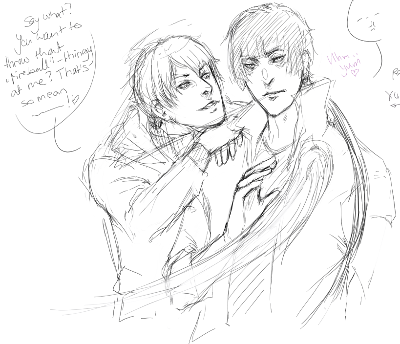 Mit Zeichnen geht gerade auch nicht viel, aber ich hab ein Fail-Bild rausgekramt von i-wann letzter Woche, was mir schon gar nicht mehr gefällt, weil halt viele Fehler blah~ aber wenigstens ein Lebenszeichen, I guess. ._.